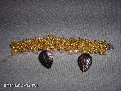 Выполним столбик меха с лепестком перламутра на узловой бисерине.